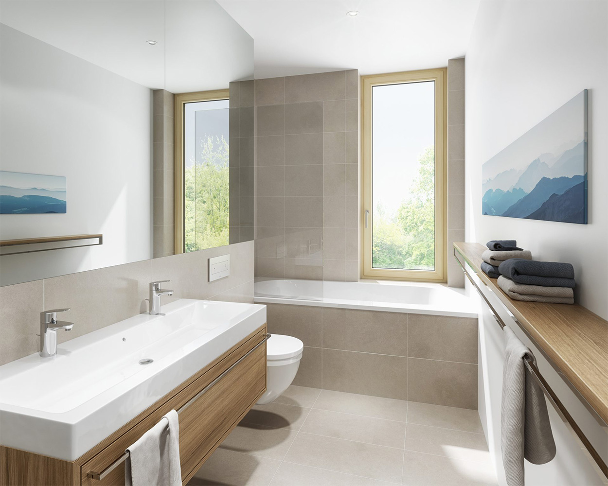 - Großflächige bodentiefe Fenster